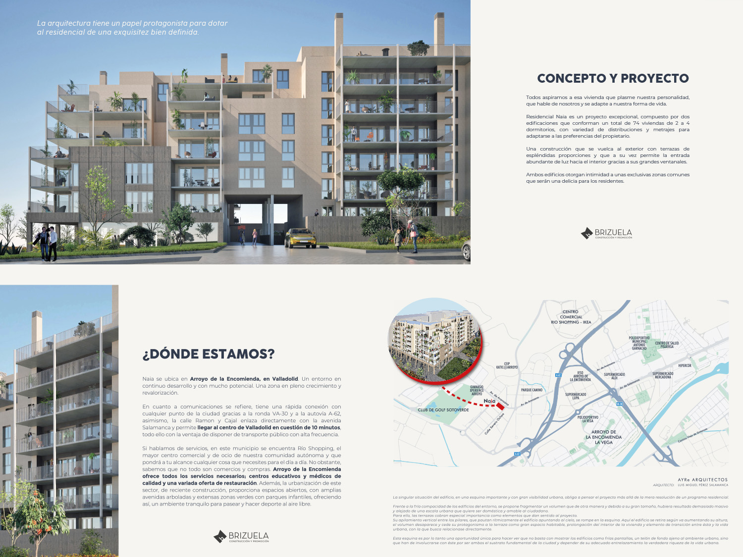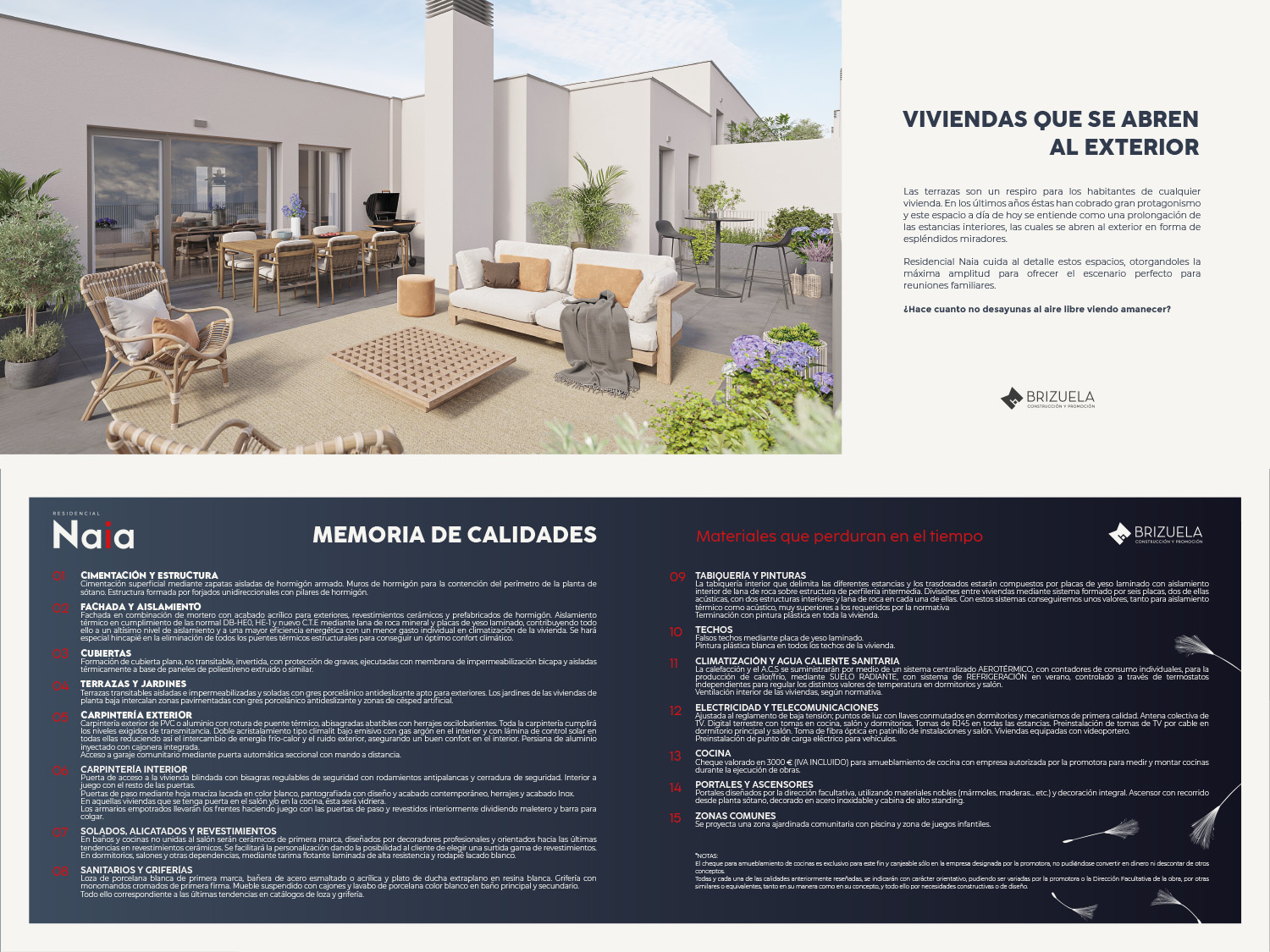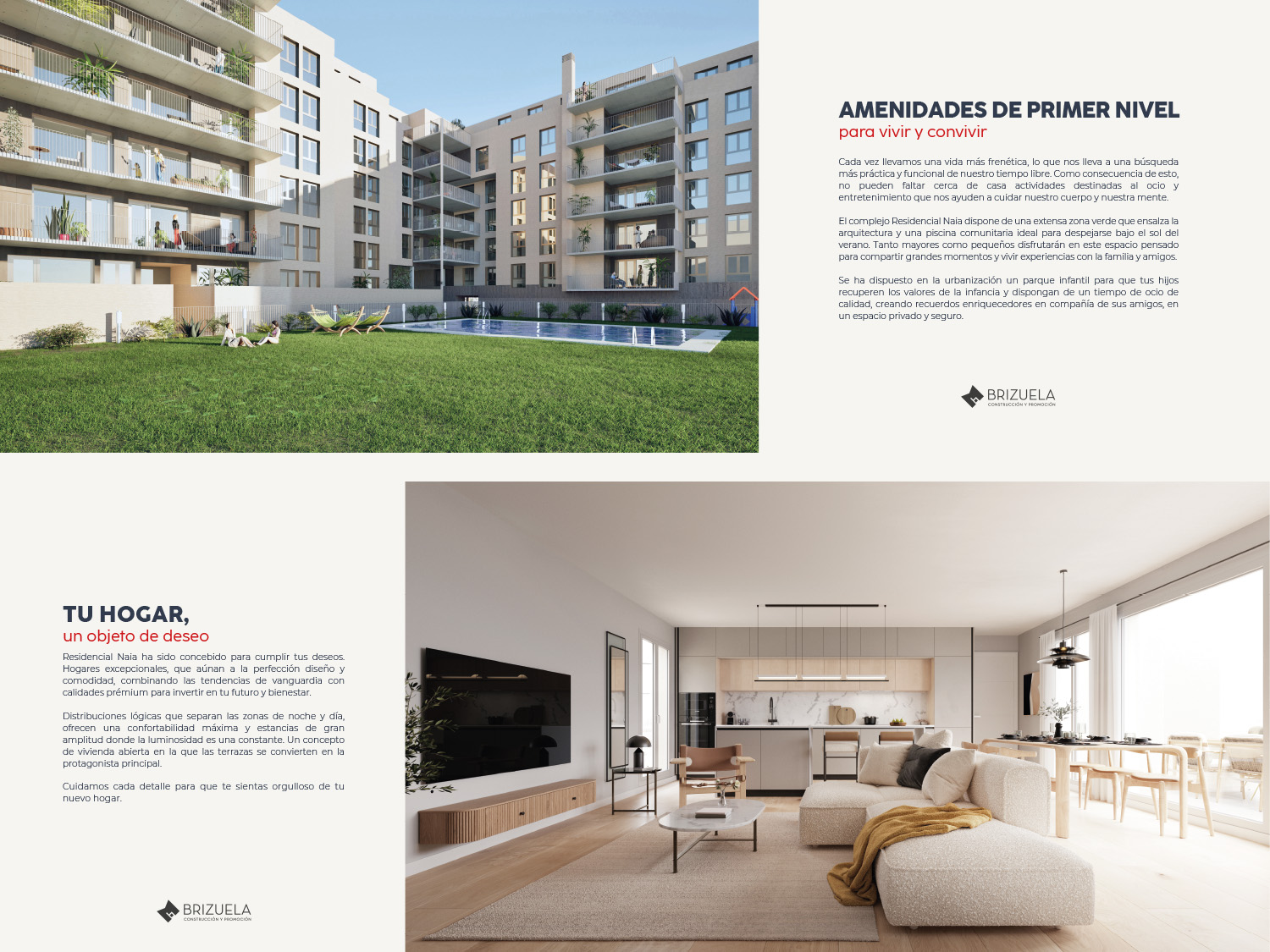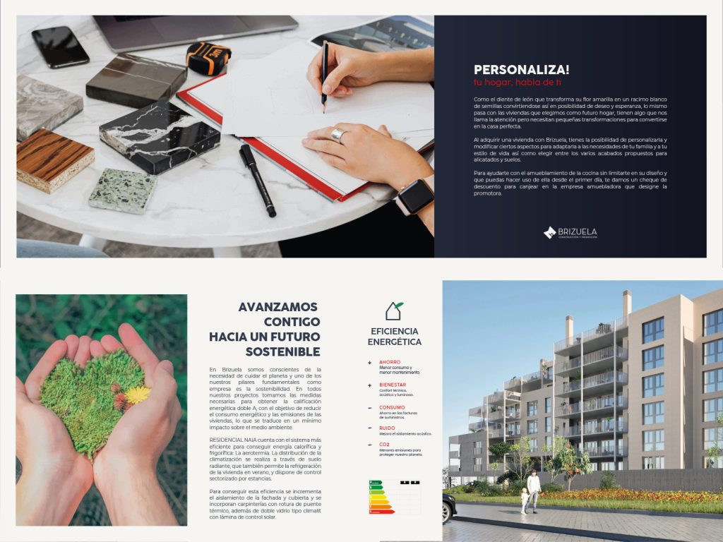 Para el Residencial Naia, de Brizuela Construcción y Promoción, hemos desarrollado fichas de vivienda, el catálogo de venta y la «landing page» específica dentro de la página web de la promotora.