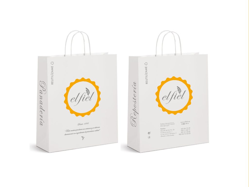 Diseño de las bolsas de pan, no se olviden de reutilizarlas, y otros formatos de packaging como las cajas para tartas y pasteles.
