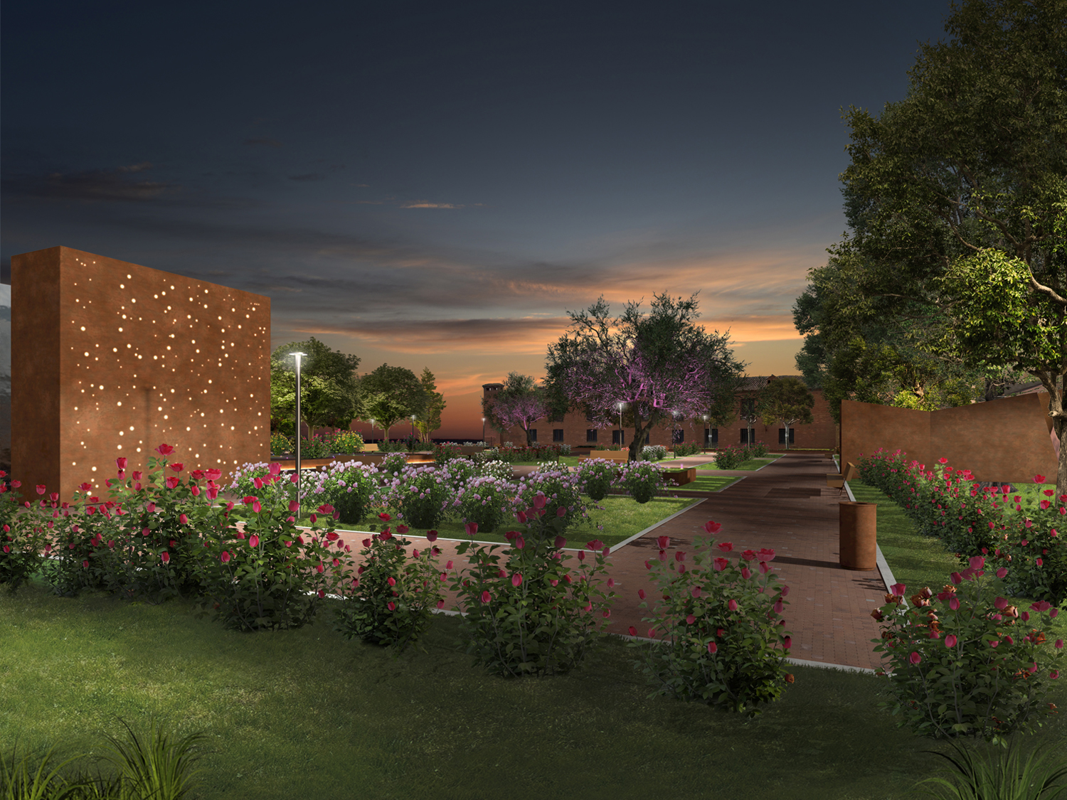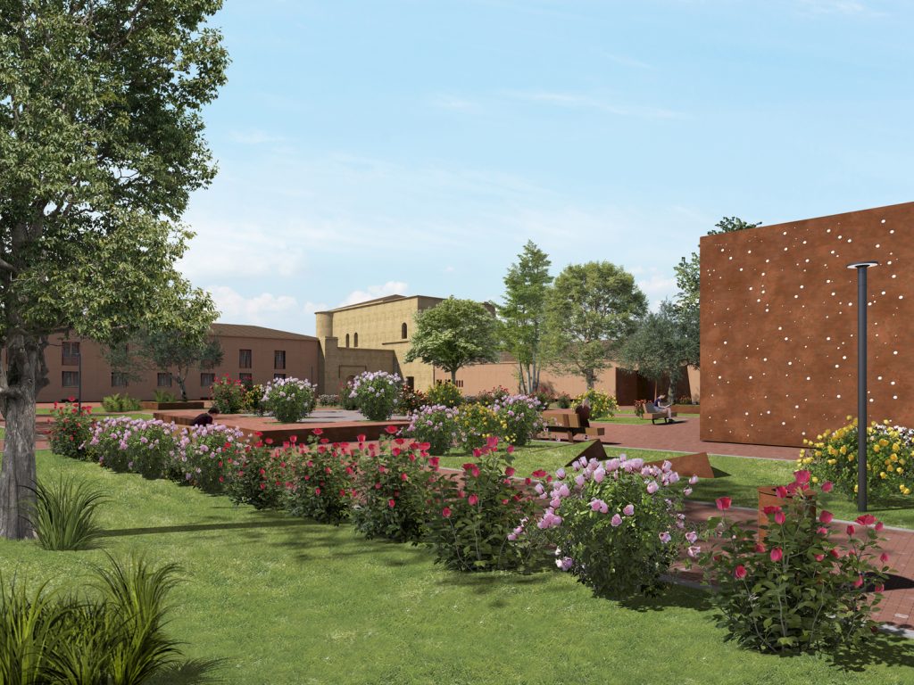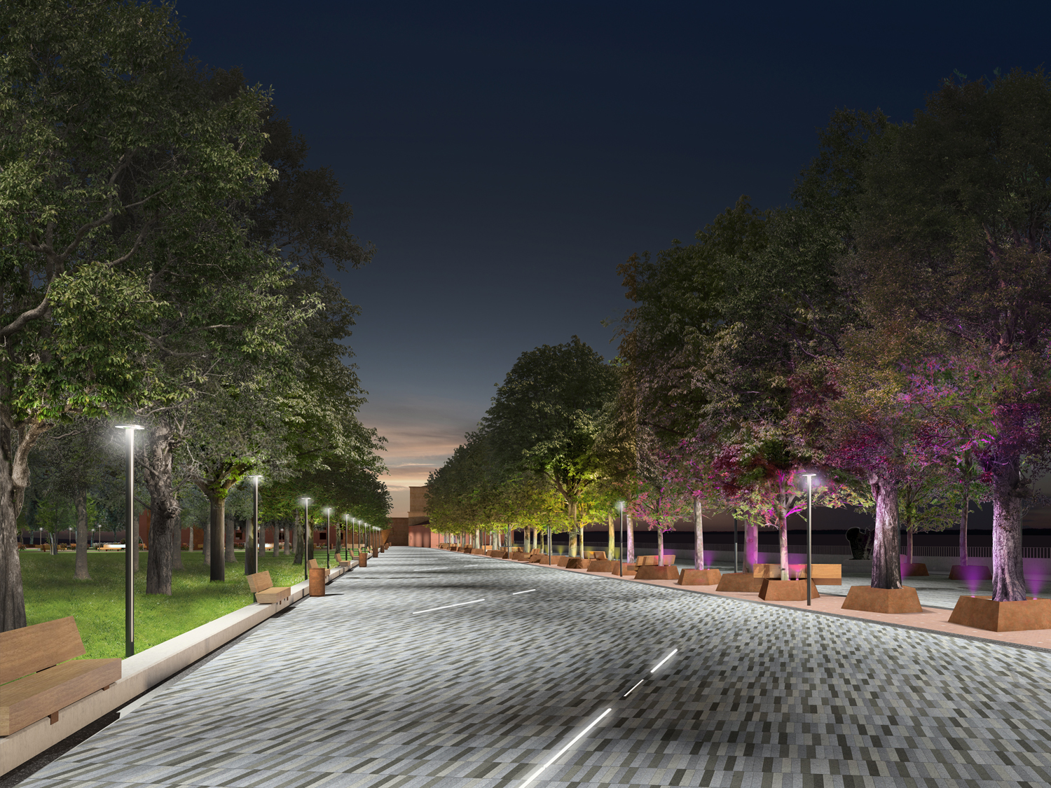 Modelado 3d, texturizado e iluminación siguiendo las pautas del proyecto arquitectónico, mobiliario urbano, elementos singulares, jardinería, …
