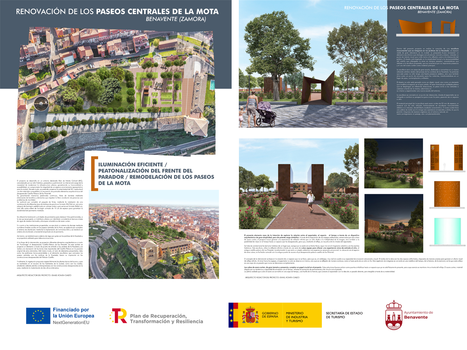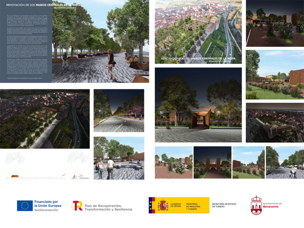 Recreaciones virtuales (infografías) del proyecto de reforma de los Paseos de la Mota en Benavente (Zamora)