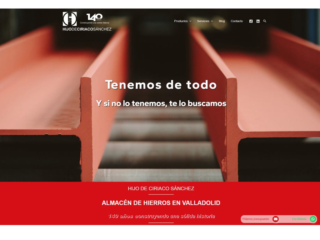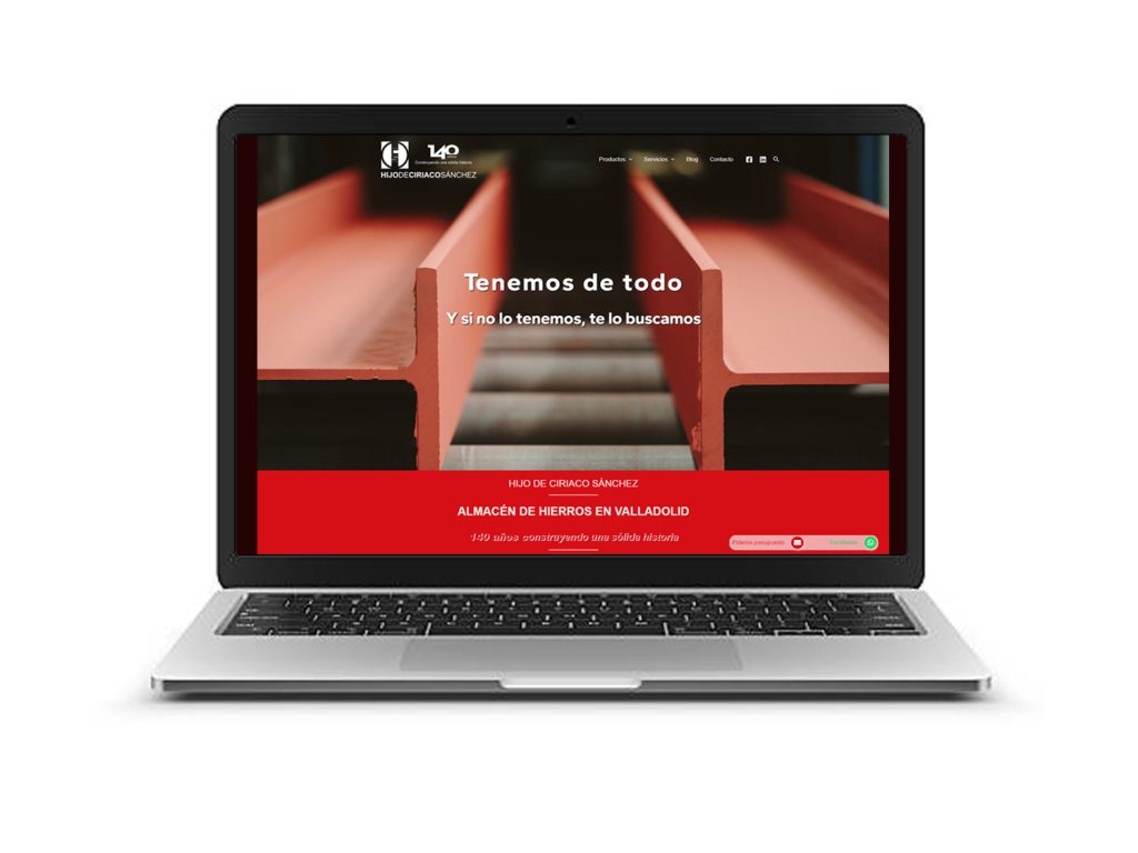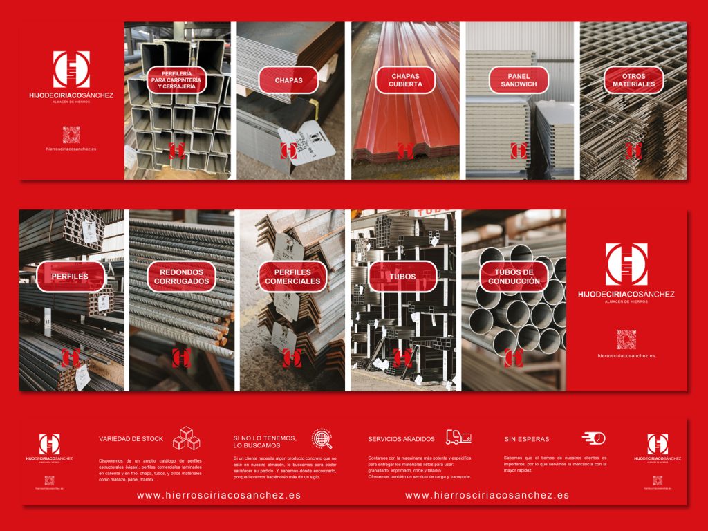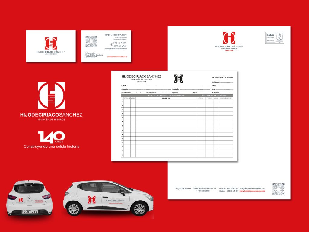 Para Hijo de Ciriaco Sánchez, Almacén de Hierros, empresa metalúrgica en Valladolid, hemos desarrollado una página web corporativa, catálogos comerciales y desarrollos varios de papelería comercial apoyados en su imagen corporativa y logotipo.